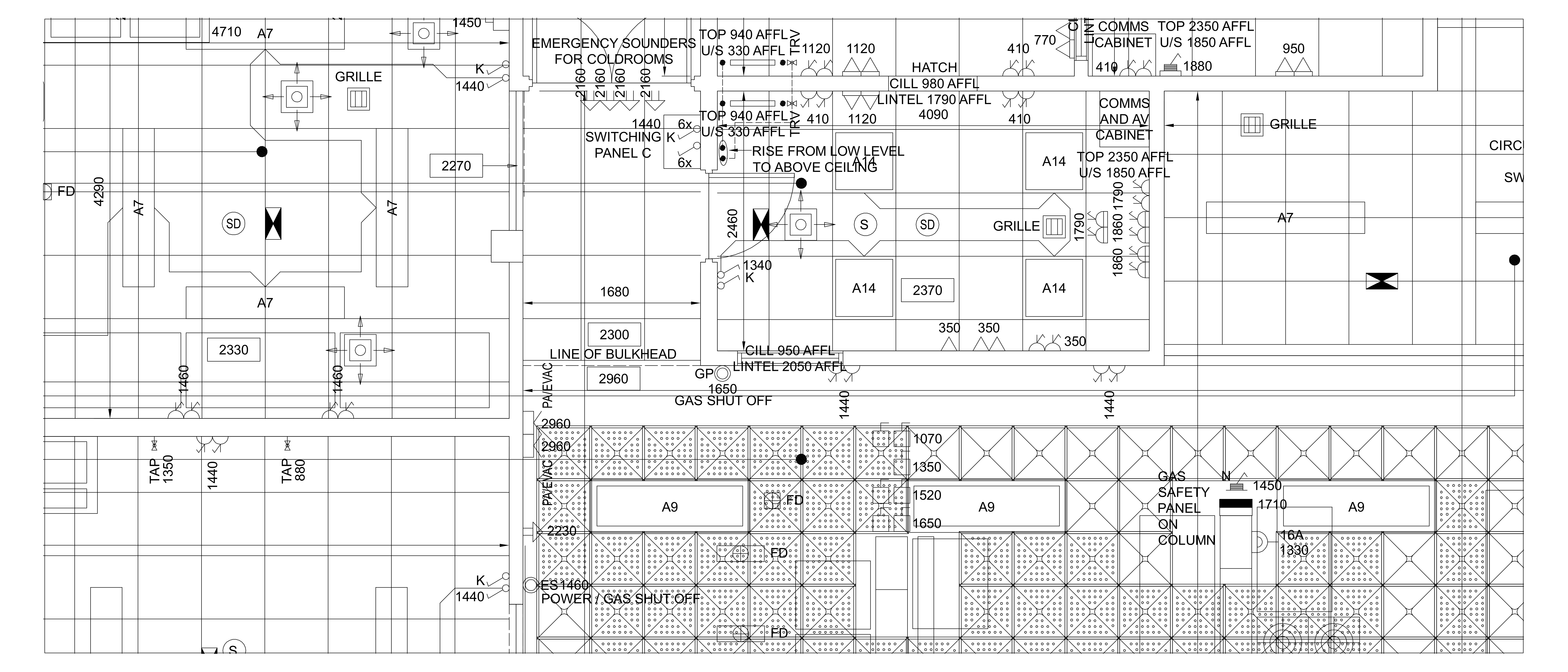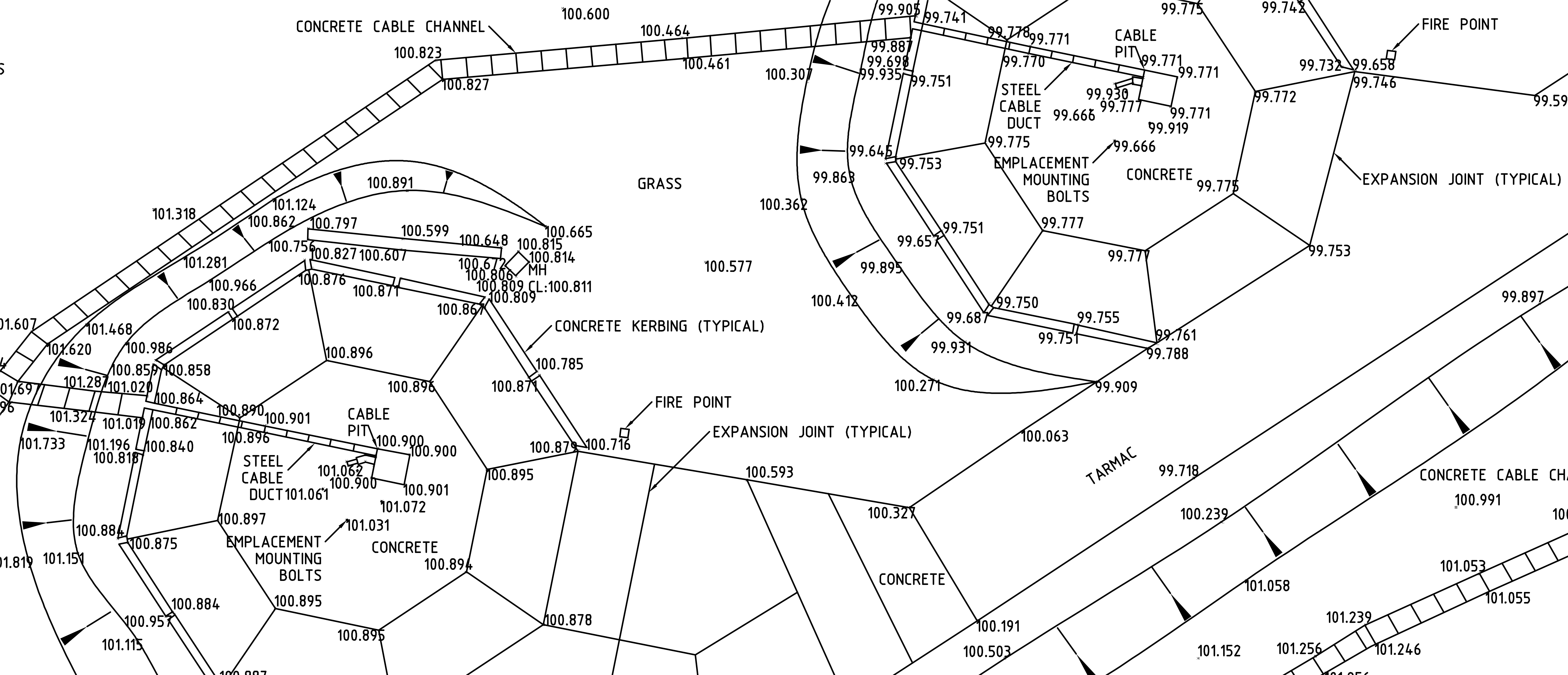 The remaining unverified manholes, pits, cable ducts, etc. were also opened, location recorded and an assessment of service made. Further any external confined spaces were identified. The existing record drawings were updated in CAD format to client specification