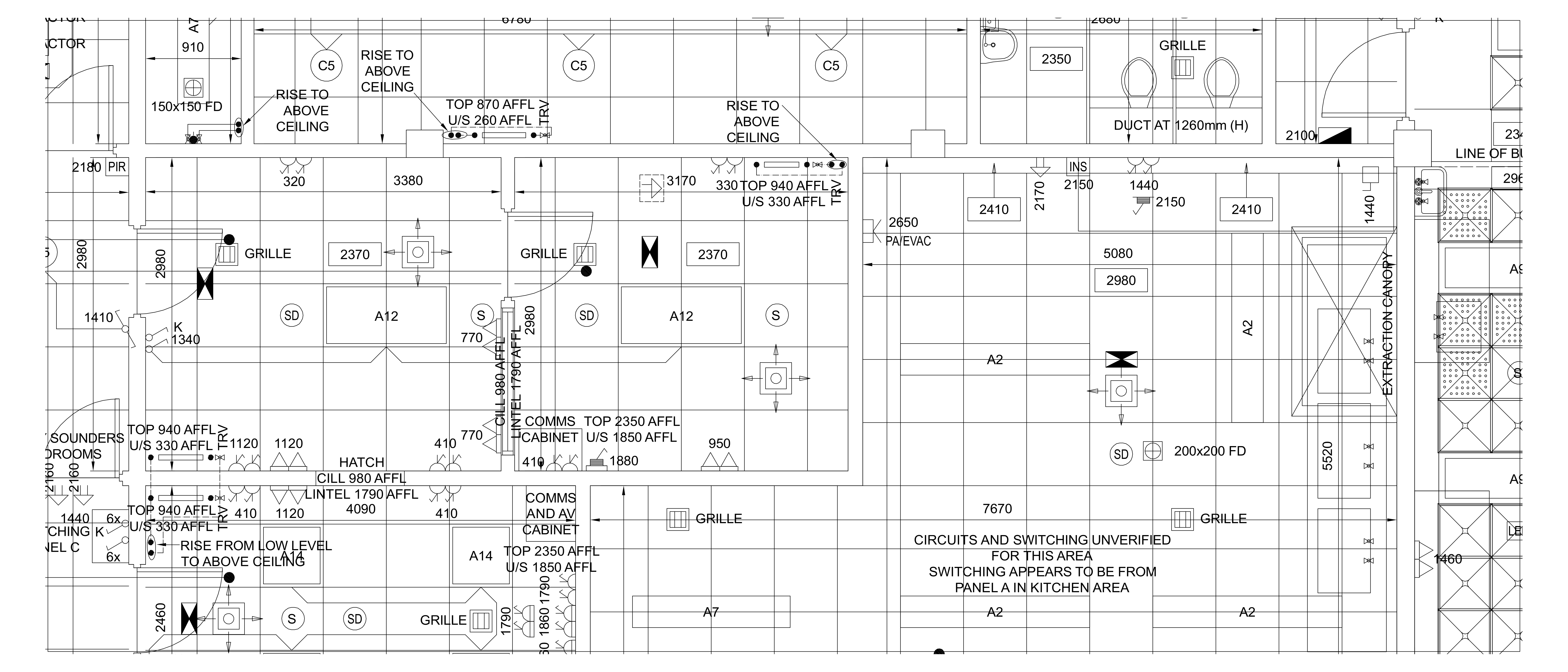 We also documented fire safety equipment and kitchen facility locations. Over a month, we surveyed and issued plans for 30 sites, ensuring timely submission to meet the final deadline